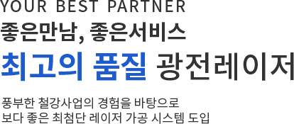레이저가공 워터젯가공 절곡 레이저가공 Sample 워터젯가공 Sample 찾아오시는길 INTRODUCTION광진레이저철강사업의 경험을 바탕으로 보다 폭 넓은 고객의 요구에 부흥하고자 첨단 장비를 보유하고 있습니다.READ MORE BUSINESS주요업무고객의 소리에 귀 기울이고 고객과의 약속을 반드시 지키는 광전레이저가 되겠습니다.READ MORE CUSTOMER CENTER궁금하신 사항이 있으시다면 전화주세요. TEL. 02-896-0777FAX. 02-896-0771 화성공장 TEL. 031-354-3192FAX. 031-353-5917